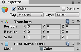 上の図は「3DObject」で作成した「Cube」の「Transfome」の項目になります。