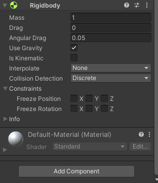 そこで、オブジェクトに物理特性を与えることができるのが「Rigidbody」です。